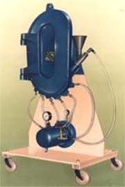 壓力氣體通過(guò)加料噴射器產(chǎn)生的射流,使粉碎原料被吸入混合室,并經(jīng)文丘里管射入“O”形環(huán)道下端的粉碎腔,在粉碎腔外圍粉碎噴嘴高速射流的作用下,相互間發(fā)生猛烈的碰撞、摩擦實(shí)現(xiàn)粉碎。